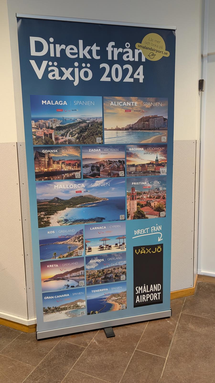 Växjö Småland Airport är en bit av Sveriges infrastruktur. Den bidrar till att hålla samman familjer och släkter, men den öppnar också upp Småland mot världen och världen för Småland. Det skiner om det blanka marmorgolvet. Det kommer att dröja ännu ett tag innan nästa reguljärflyg anländer och det är tomt i den välstädade och prydliga ankomsthallen. Några av de anställda skyndar förbi, iklädda gula västar. De ska ta emot Luleå Hockey som flugit söderut för match mot Växjö. Det exemplifierar en av de många saker som en regional flygplats möjliggör.