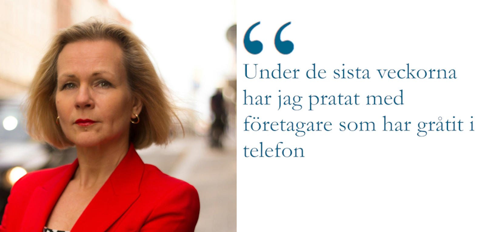 - Under de sista veckorna har jag pratat med företagare som har gråtit i telefon. De har drivit sina företag i generationer och hade sett fram emot ett av de bästa åren i sikte. Därefter har det gått väldigt fort. Företag som har stått stabila i vissa fall så långt tillbaka som 70 år är på några veckor vid konkursens brant. Det är ett scenario som är svårt att föreställa sig.