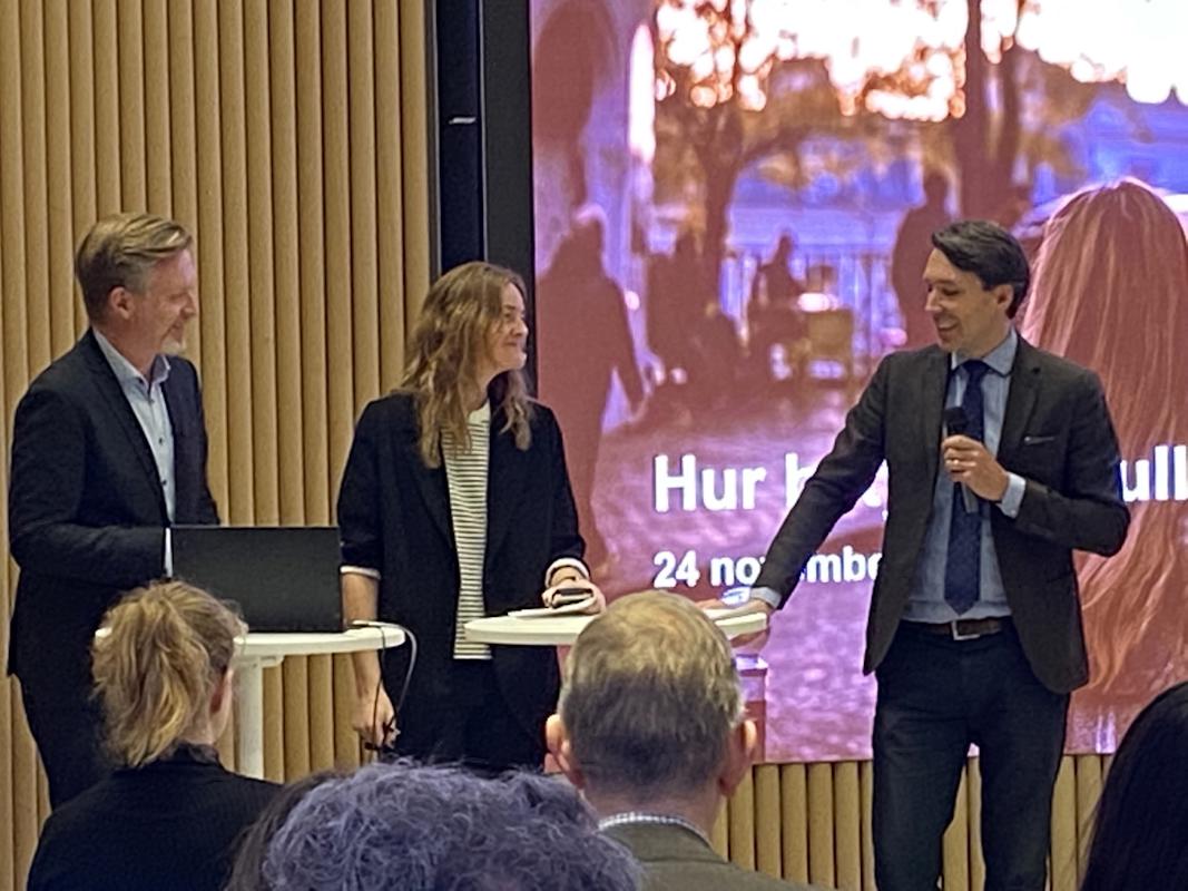 Nicklas Domeij, WSP , samtalar med Anders Josephsson, Transportföretagen, och Jessica Alenius, Bil Sweden som modererade seminariet i onsdags.