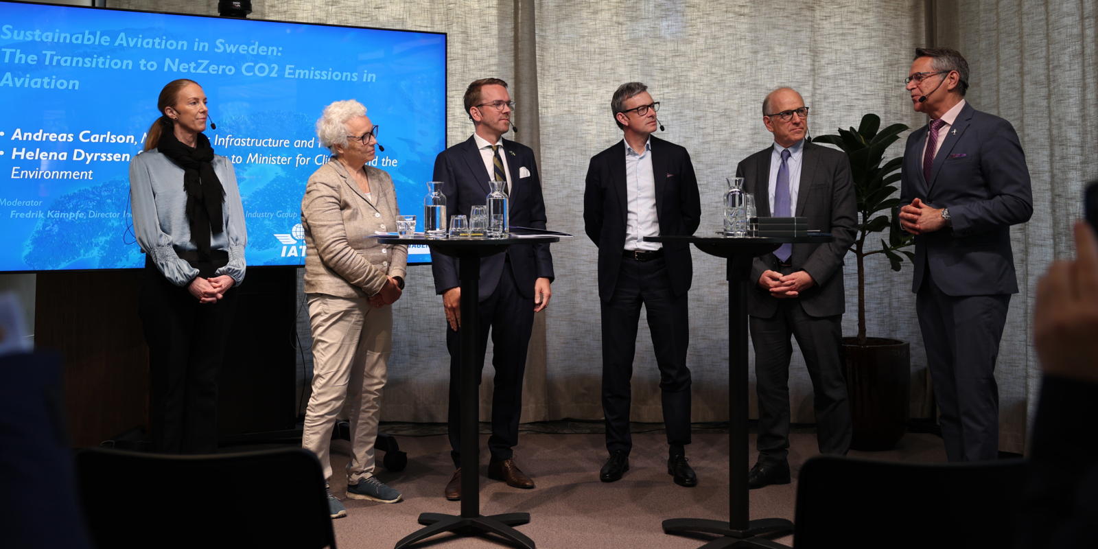 Den 19:e maj samlades representanter för luftfarten i Näringslivets hus för att diskutera policy och vägval för att nå ett utsläppsfritt flyg. På plats fanns representanter för flygbranschen, den internationella luftfartsorganisationen IATA och representanter för politiken, både infrastrukturminister Andreas Carlson och Helena Dyrssen, statssekreterare på Klimat- och näringslivsdepartementet.