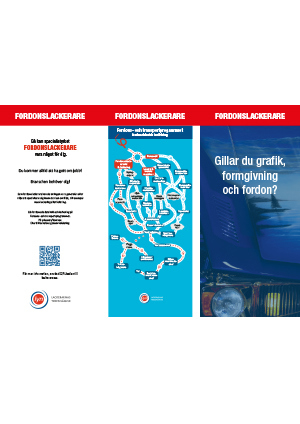 Foldern "Att jobba som fordonslackerare" innehåller information om yrkesgrenen fordonslackerare, som finns inom fordons- och transportprogrammet på gymnasieskolan. Foldern publicerades september 2022 och finns här för nedladdning: