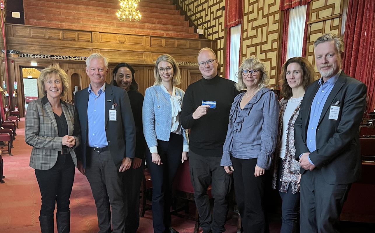 Medverkade i bild Fr v: Berit Johansson, Thomas Byström, Katrin Behdjou Arshi, Monica Bruvik, Anders Österberg, biträdande finansborgarråd, Stockholms stad, Elisabet Elmsäter Vegsö, Jessica Aftén Moback, Anders Josephsson.